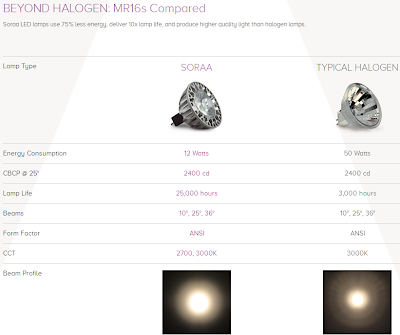 LEDs are usually made by growing a thin layer of gallium nitride on top of a sapphire, silicon carbine, or silicon substrate. Soraa takes a different approach. It uses gallium nitride for the substrate. This reduces a mismatch in the crystal structure between the two layers, which causes the performance of LEDs to diminish as current densities increase. By reducing such mismatches, or “dislocations,” by a factor of 1,000, Soraa officials say they can push 10 times more current through a given area of active layer material. The increase in current density results in a tenfold increase in LED brightness.